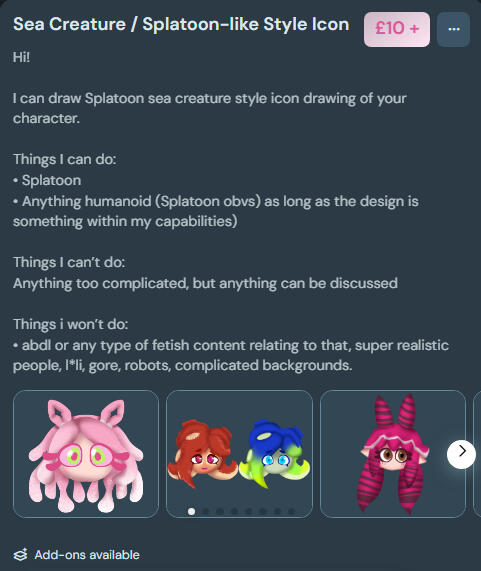 Please read before ordering.So! I usually try and get commissions and art done whenever I first get the payment!What I will do is every so often send WIPs just so you can check on how I’m doing!If you use it for personal use or commercial use, please credit me!Refunds obviously will be available if needed, but remember to communicate, I’d always love to help if needed.I have the right to refuse a commission.GENERAL TERMS:• Please write in a clear and polite manner when messaging and Provide clear references when required. (If I'm drawing your character, they will be required.)• Any ill behavior will not be tolerated and your commission will be canceled if it occurs.• I, the artist, have the right to decline or cancel a commission for any reason.• Commission prices are subject to change, but price changes will not apply if a client is in the queue for a commission and they made their commission request before the change took place.• Clients must state whether their commission will be used solely for personal use or if they intend to use it commercially and potentially profit off of the work.• Clients must state whether or not they would like their commission to remain private, otherwise I’d love to post it if possible!PROCESS:- The client must provide a clear idea of the work they would like. (The kind of commission you buy will be the one you receive.)- The client must provide clear reference images if required. (Which they will be if it’s a custom character)- Work will be started once full payment has been received. I, the artist, will confirm with the client that I have received payment, then I’ll get to work!- Work In Progress will be given to the client in the form of a low resolution JPG after each phase (pencil/sketch, ink/line art, and color).- Work will be started as soon as possible once payment has been received. The artist will inform the client if there is a queue for commissioned work and will keep them informed of their place in line.- The client will be sent a high resolution file of their commission via ko-fi dm or email (or discord if I have you on there) once the client has confirmed that the work is to their satisfaction.CUSTOMER SATISFACTION- I, the artist, will do everything I can to make my clients happy.