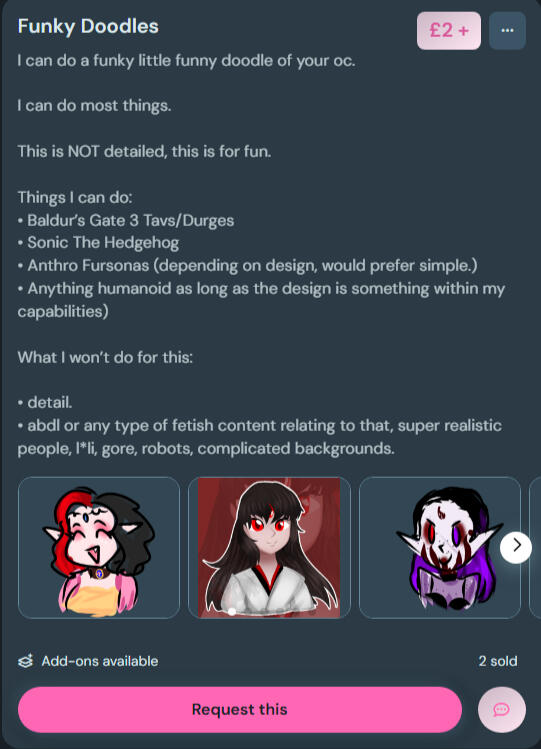 • abdl or any type of fetish content relating to that, real people (unless consent was given.), l*li, gore, robots, complicated backgrounds, nsfw._____All payments will be done on ko-fi only.. and communication will be done through my Ko-fi, or DMs on Instagram etc